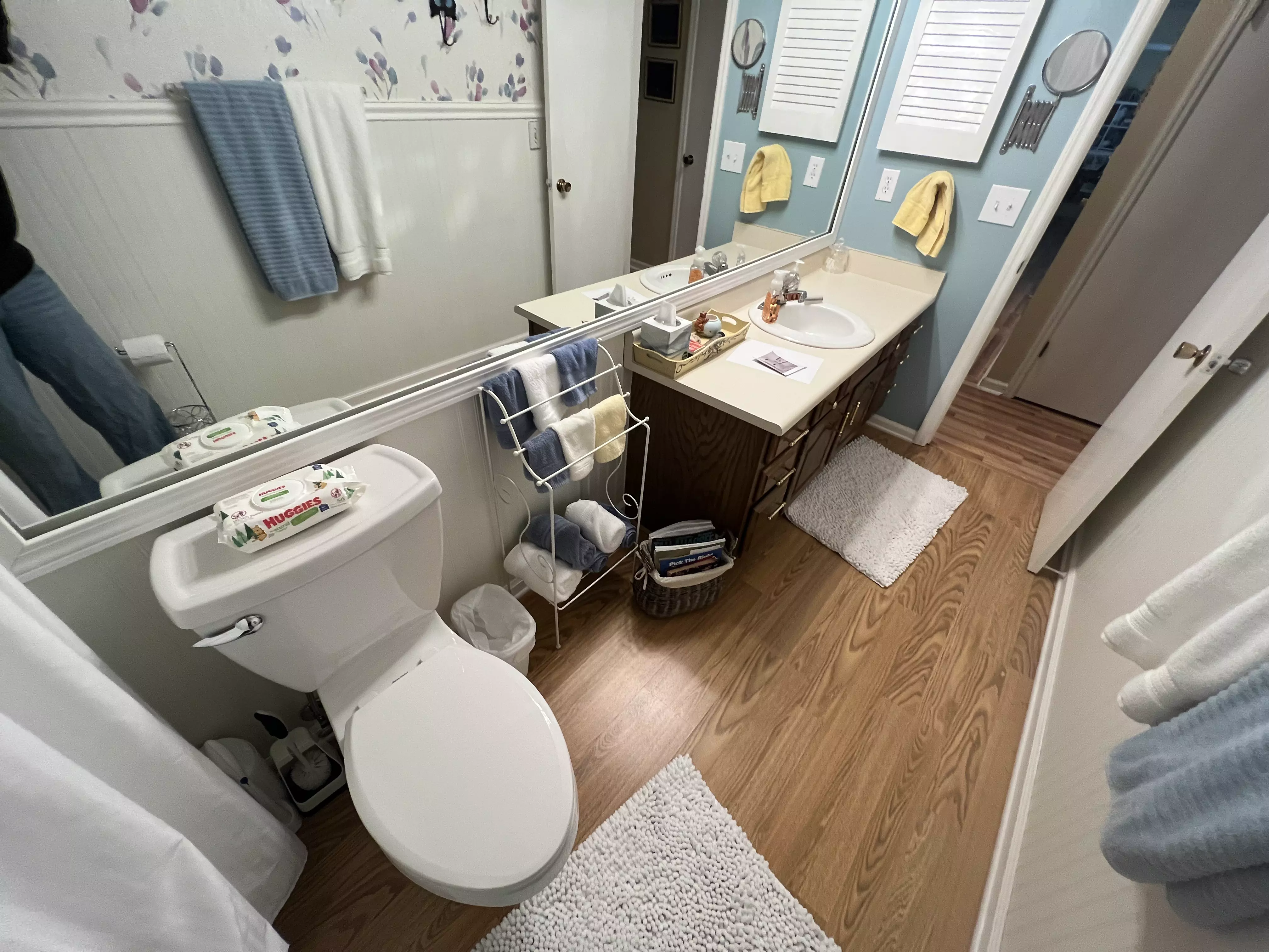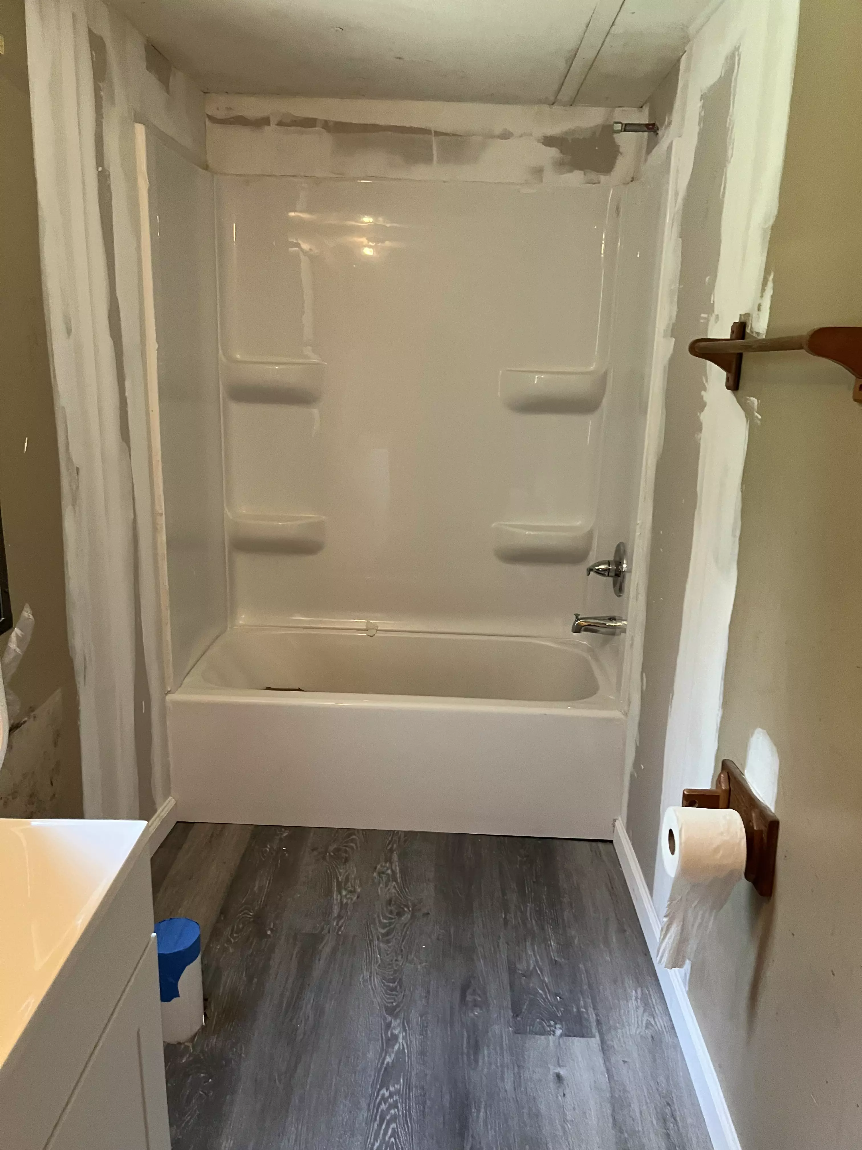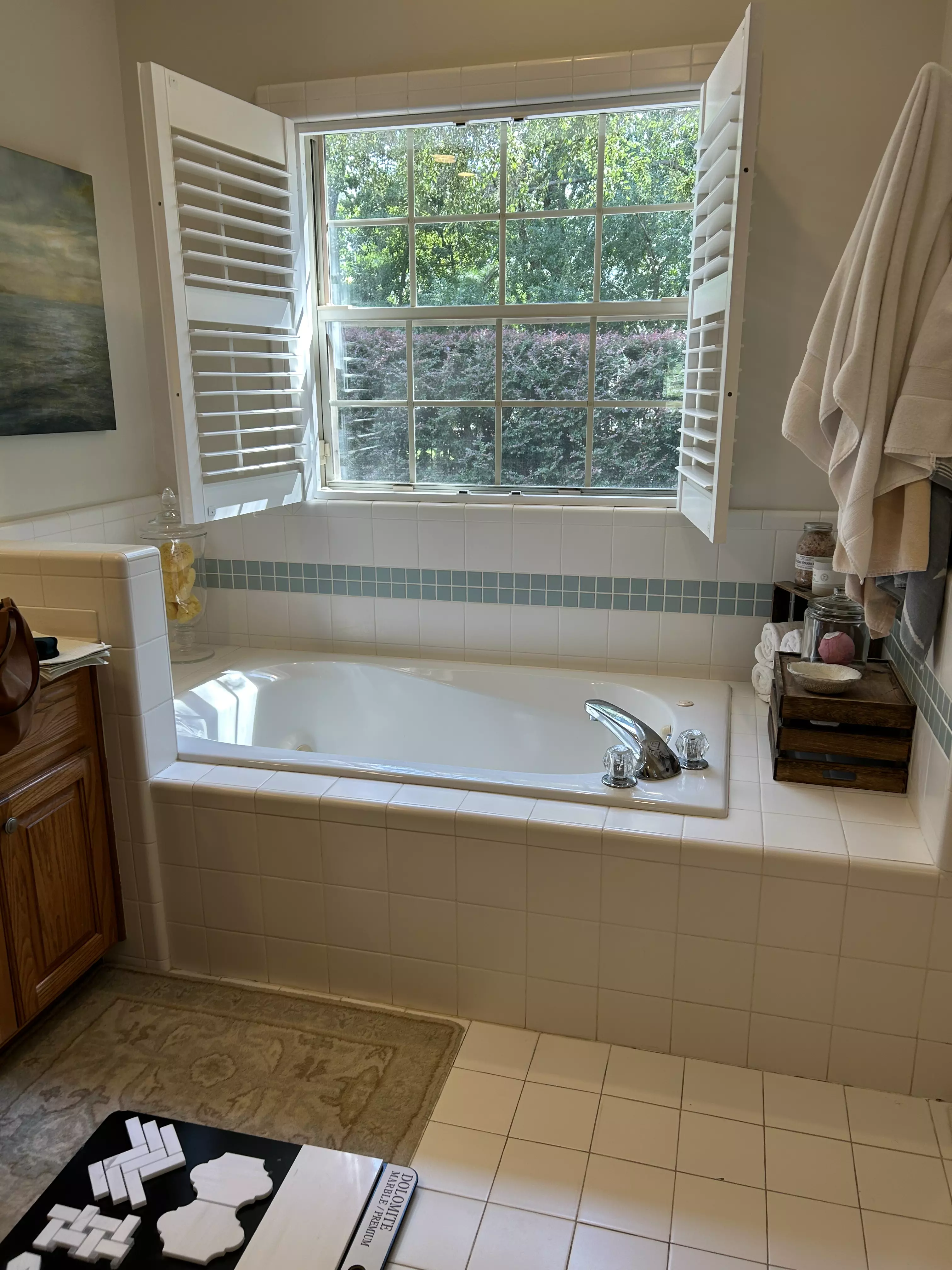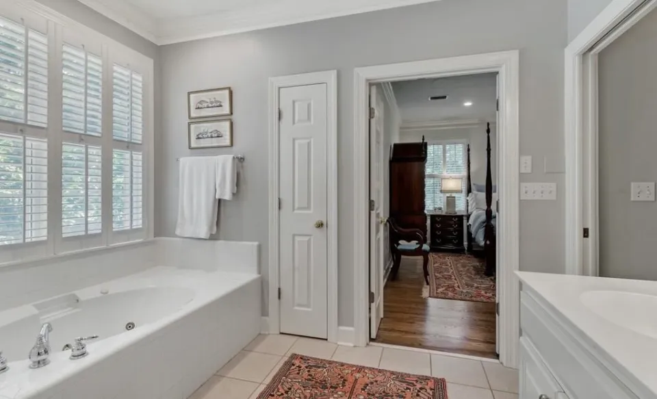 Bathroom Upgrade: This space now boasts a luxurious freestanding tub, a spacious walk-in shower with elegant marble tile, and sleek glass doors for a modern touch. The new vanity and contemporary lighting fixtures complete the spa-like retreat that’s perfect for relaxation.